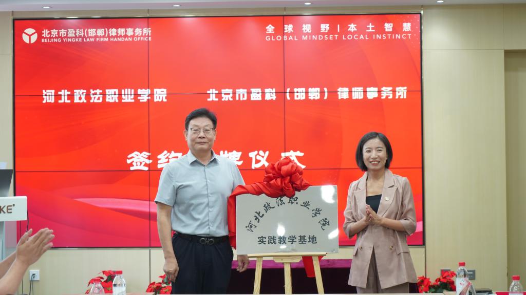 2025年8月21日,学校与北京市盈科(邯郸)律师事务所签订战略合作协议,并举行实践教学基地揭牌仪式,学校党委委员、副院长冯兆蕙和盈科华北区管委会副主任、盈科邯郸管委会名誉主任李红斌出席仪式。