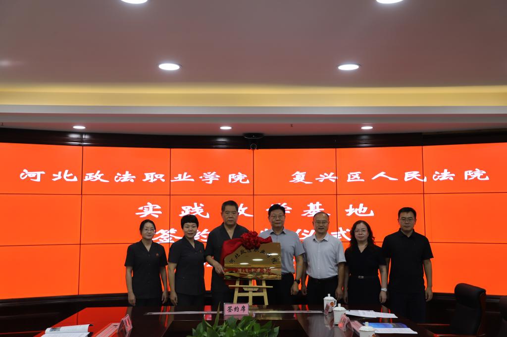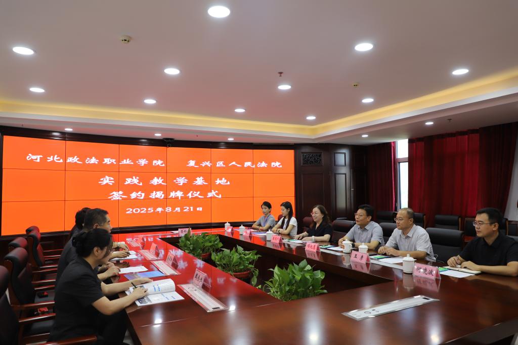 2025年8月21日,学校与邯郸市复兴区人民法院签订战略合作协议,并举行实践教学基地揭牌仪式,学校党委委员、副院长冯兆蕙和复兴区法院党组副书记、副院长李亚雷出席仪式。