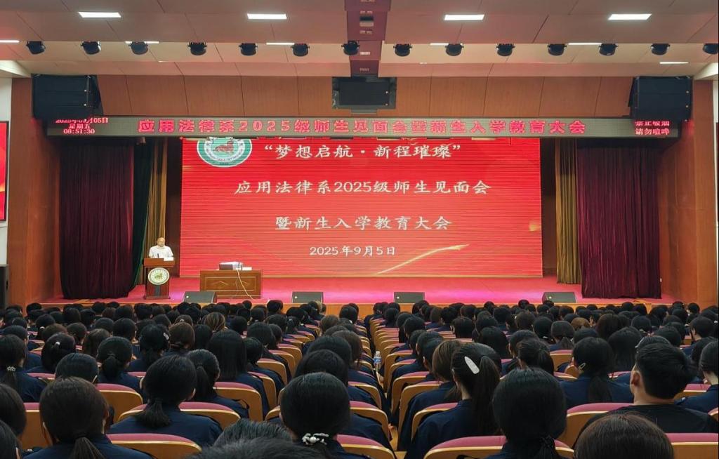 9月5日,应用法律系于学院大礼堂隆重举行2025级新生师生见面会暨入学教育大会。系领导、专业负责人、辅导员及全体新生参加。