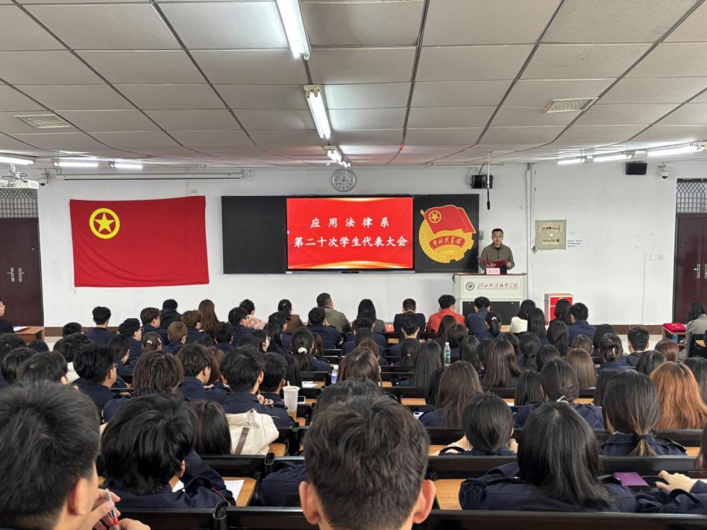 10月15日,应用法律系第二十次学生代表大会在阶梯16教室召开,系领导、专兼职辅导员及全体学生代表参加大会。