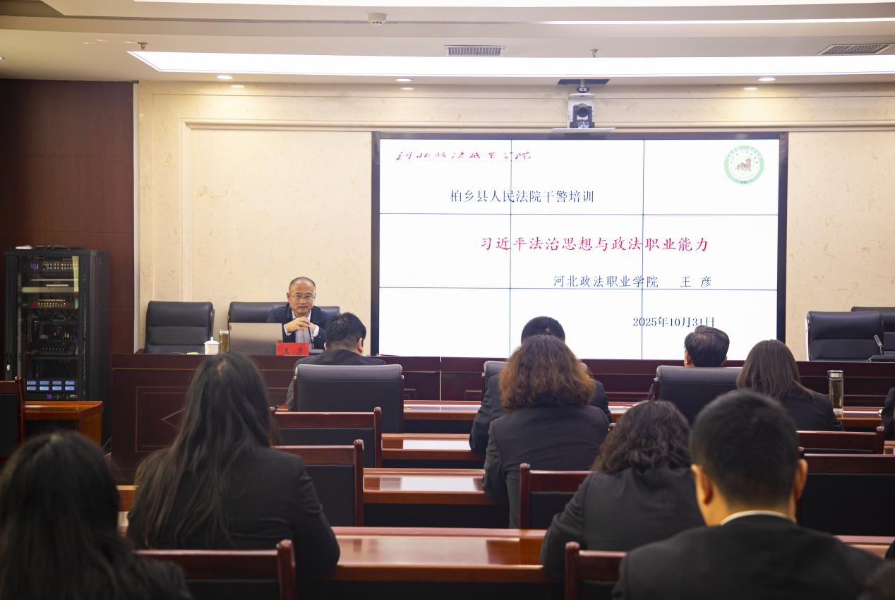 2025年10月31日,应用法律系教师王彦应邀为柏乡县人民法院举行《习近平法治思想与政法职业能力》专题讲座,柏乡法院60余名干警参加活动。王彦从习近平法治思想的提出、习近平法治思想的生成密码和核心要义等方面,结合司法审判实践进行讲解,受到在场干警的欢迎。本次培训授课是学校服务社会的又一次体现。