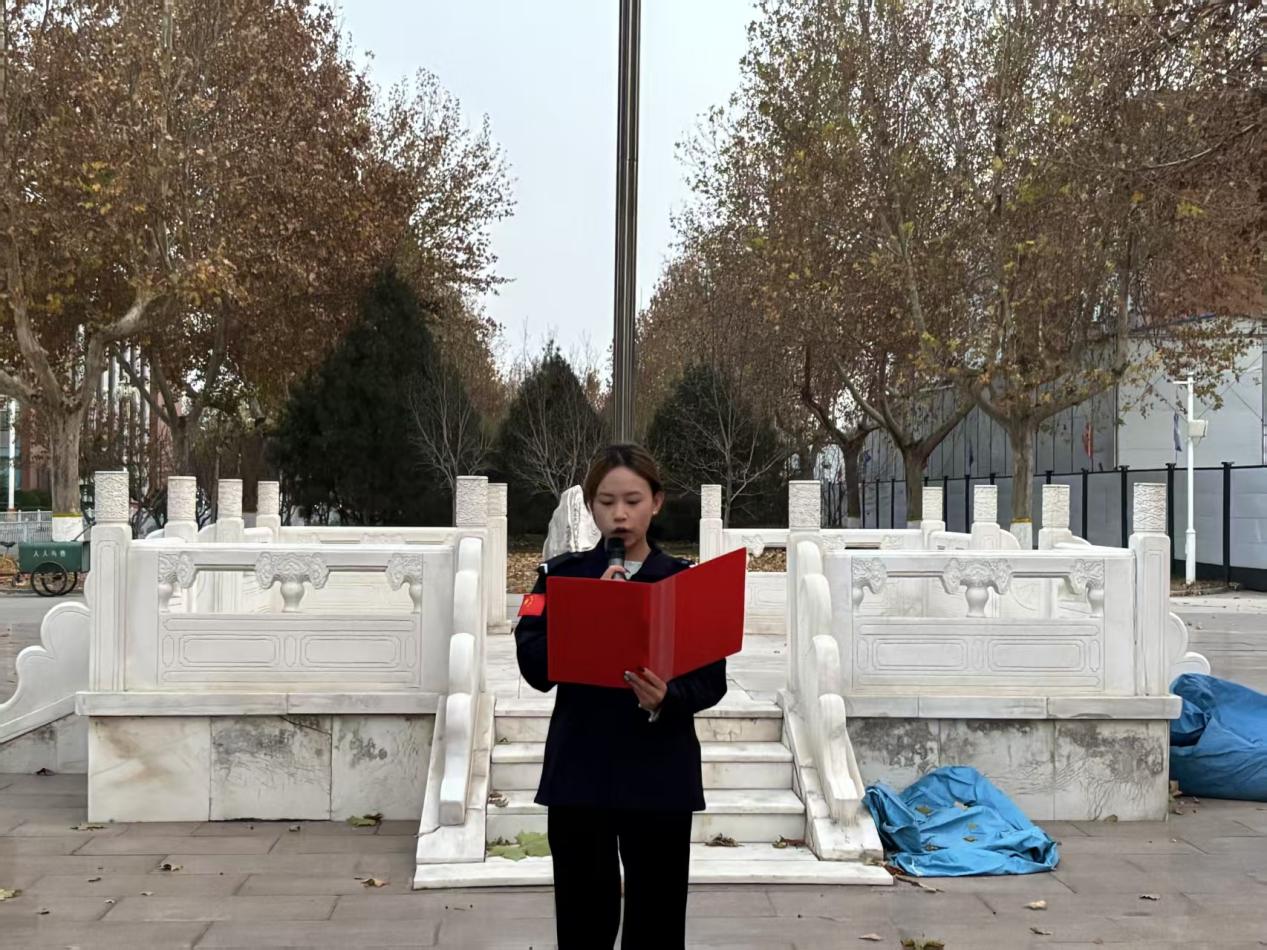 在雄壮的国歌声中,五星红旗冉冉升起。礼毕后,刘念祖同学结合专业学习实践,阐释法治文化的核心内涵,倡导同学们立足专业根基、坚定理想信念,在学习生活中践行法治精神、传递法治力量。王露茜同学宣读了《文明校园建设倡议书》,深刻阐述了法治与文明相辅相成的关系,号召全体同学以文明言行规范自身行为,共同营造和谐有序的校园氛围。