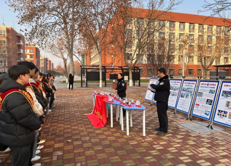 12月15日,师生志愿者们与石家庄市第二强制隔离戒毒所民警组成“春雨禁毒志愿宣传队”走进校园,举办“青春无毒,未来可期”禁毒宣传活动。民警通过仿真毒品模型与真实案例,系统讲解各类毒品危害与识别技巧,结合互动问答等形式提升学生识毒、防毒、拒毒能力。现场气氛热烈,同学们踊跃参与,纷纷表示将自觉远离毒品,共同筑牢校园禁毒防线。